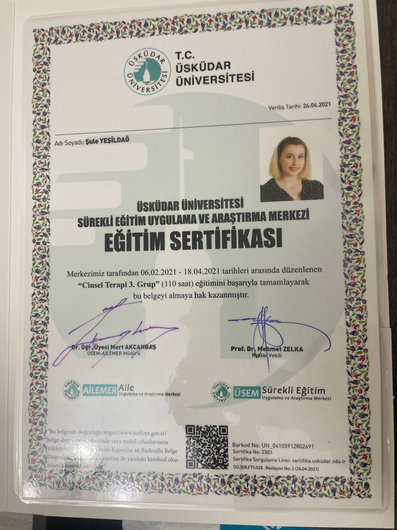 Merhaba, ben Psikolog Şule Maraşlıoğlu. Üsküdar Üniversitesi Psikoloji bölümünden 2020 yılında mezun oldum. Lisans eğitimim süresince ve sonrasında aile ve çift terapisi ile cinsel terapi alanlarında eğitimlerimi yine Üsküdar Üniversitesi bünyesinde tamamladım.